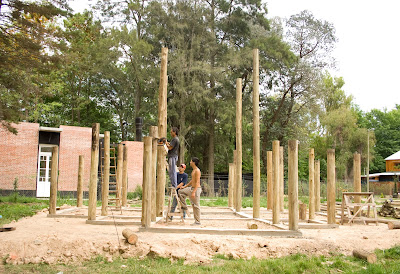 | Sobre estas vigas irá el machimbre y encima, el techo vivo o verde. |